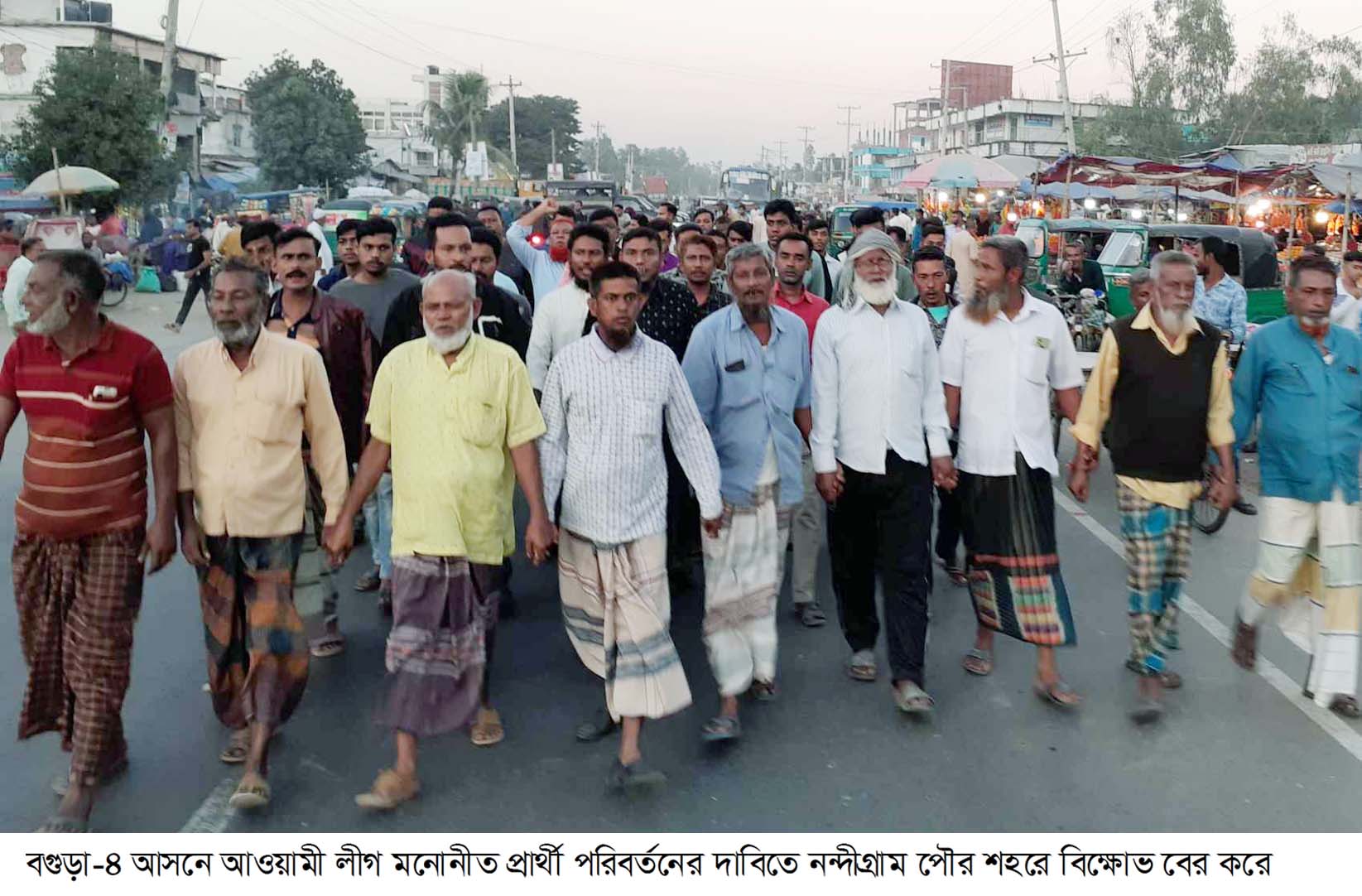 বগুড়া-৪ আসনে আওয়ামী লীগ মনোনীত প্রার্থী পরিবর্তনের দাবিতে নন্দীগ্রাম উপজেলায় বিক্ষোভ করা হয়েছে। উপজেলা আওয়ামী লীগের সভাপতি আনোয়ার হোসেন রানা দলীয় মনোনয়ন বঞ্চিত হওয়ায় তার কর্মী-সমর্থকরা বিক্ষোভ মিছিল করে।