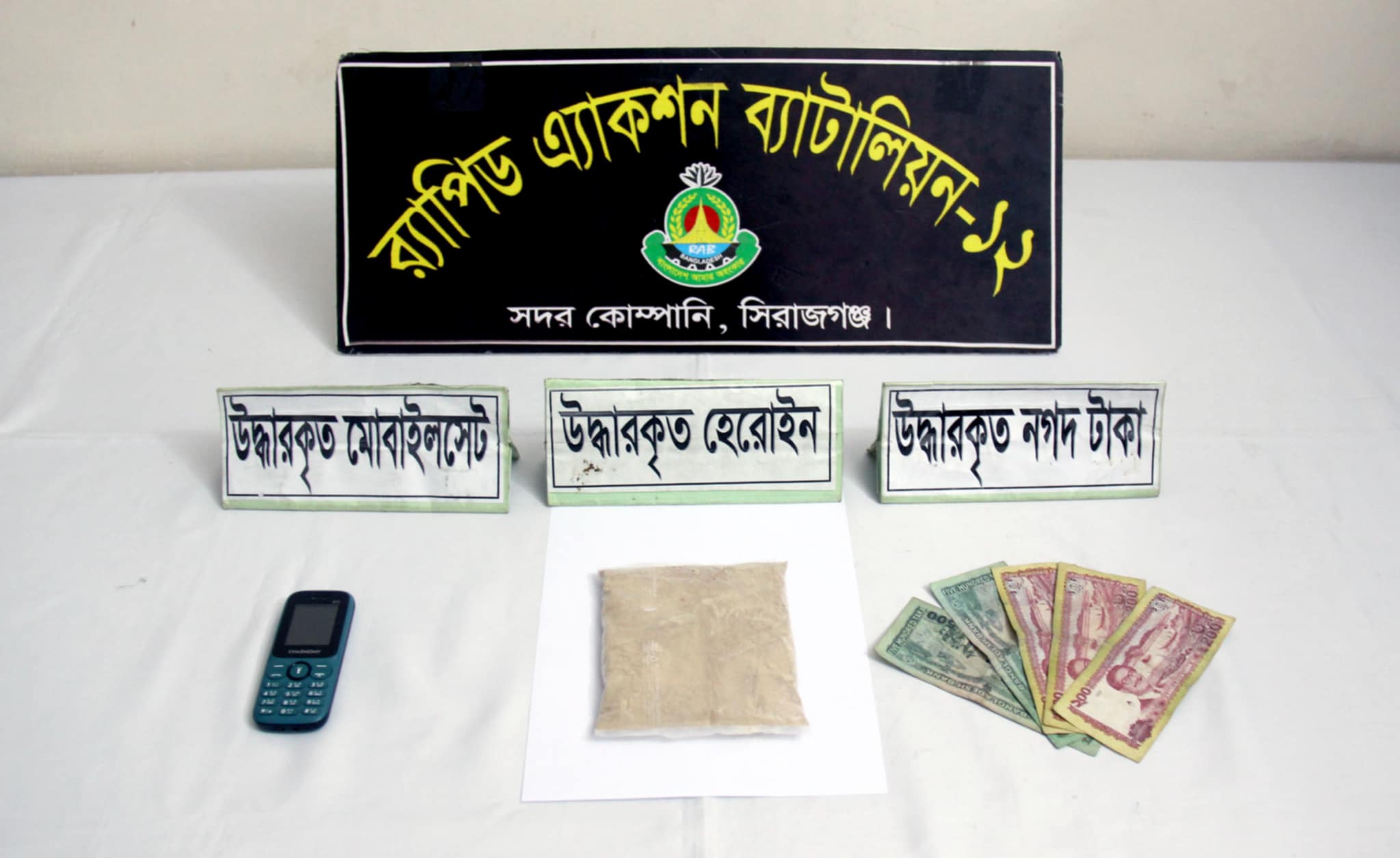 র্যাব-১২, সিরাজগঞ্জ এর অভিযানে অভিনব কায়দায় মাদকদ্রব্য পরিবহনকালে ১০৩ গ্রাম হেরোইনসহ ০১ জন মাদক ব্যবসায়ী গ্রেফতার।