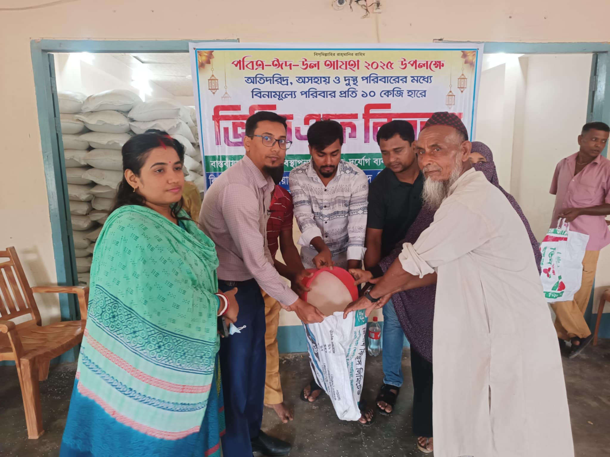- সিরাজগঞ্জ কালিয়া হরিপুর ইউনিয়নে আসন্ন ঈদুল আযহা উপলক্ষে হতদরিদ্রদের মাঝে ভিজিএফ’র চাউল বিতরণ করা হয়েছে। দূর্যোগ ব্যবস্থাপনা অধিদপ্তর এর সহযোগিতায় উক্ত ইউনিয়নে ৩ হাজার ৮‘শ ৯১ জনের মধ্য ভিজিএফ’র ১০ কেজি চাউল বিতরণ করা হয়। আজ (১জুন ২০২৫ইং) রবিবার সকাল ৯ টায় ৯নং কালিয়া হরিপুর ইউনিয়ন পরিষদে ভিজিএফ’র বিতরনের শুভ উদ্বোধন করেন আনোয়ার হোসেন ( প্রশাসক), সুমি খাতুন ( ইউপি সচিব), এসময় উপস্থিত ছিলেন অত্র ইউনিয়নের মেম্বর বর্গ।