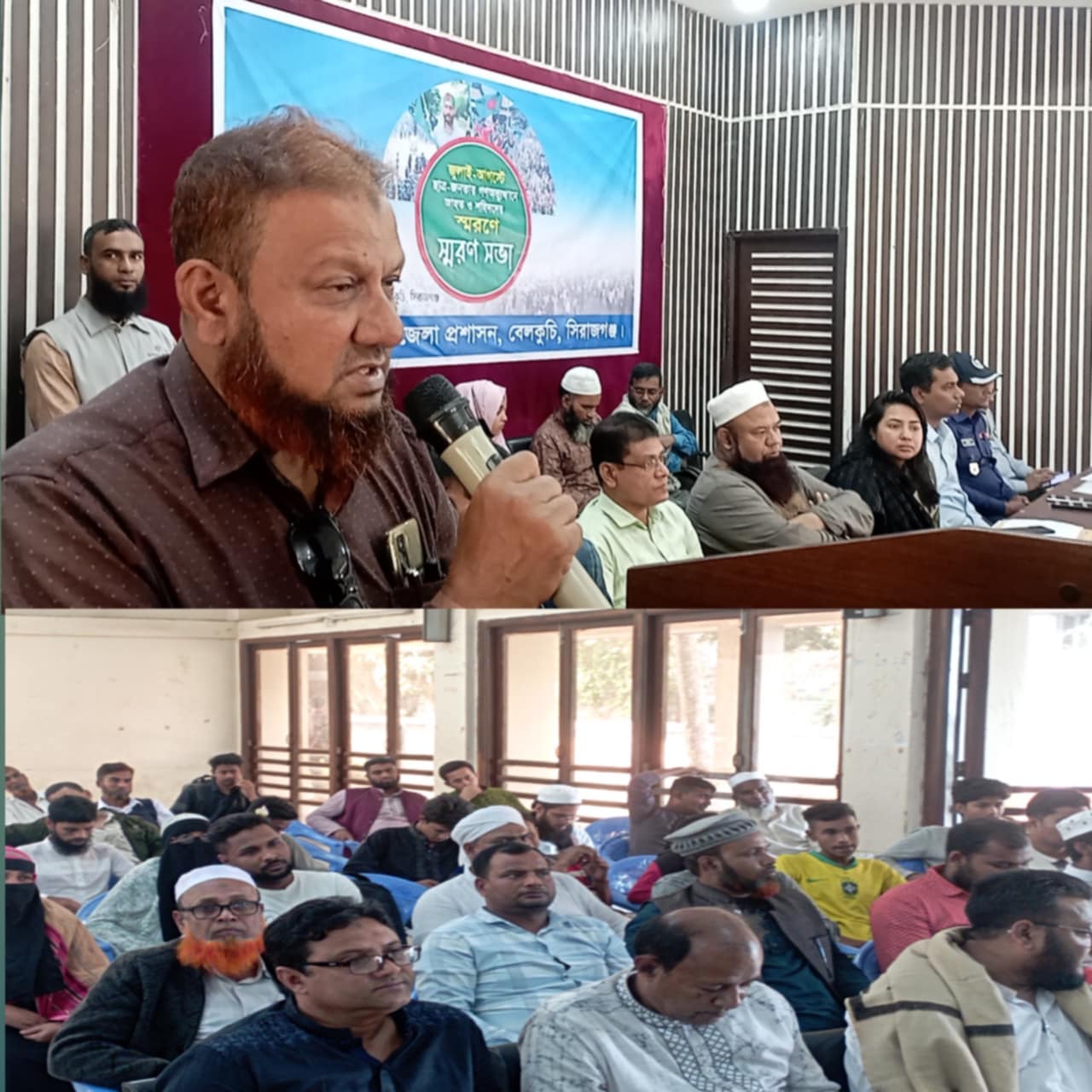 বুধবার দুপুর ১২ টা বেলকুচি উপজেলা পরিষদ অডিটোরিয়ামে উপজেলা নির্বাহী অফিসার জনাবা আফিয়া সুলতানা কেয়া এর সভাপতিত্বে সভায় উপস্থিত ছিলেন বেলকুচি উপজেলা বি এন পির সাবেক সভাপতি হাজী জামাল উদ্দিন ভূইয়া,বাংলাদেশ জামায়াতে ইসলামী বেলকুচি উপজেলার সম্মানিত আমীর আরিফুল ইসলাম (সোহেল), উপজেলা বি এন পির আহবায়ক নুরুল ইসলাম গোলাম, উপজেলা বি এন পির সদস্য সচিব বনি আমিন, বেলকুচি প্রেসক্লাবের সাধারণ সম্পাদক রেজাউল করিম, মুকুন্দগাঁতী বাজার বণিক সমিতির সাধারণ সম্পাদক হেলাল উদ্দিন প্রামাণিক, শহিদ পরিবারের সদস্য শহিদ হাফেজ সিহাবের পিতা,মোঃ আব্দুল কুদ্দুস, বৈষম্য বিরোধী ছাত্র আন্দোলনের বেলকুচি প্রতিনিধি জান্নাতুল ফেরদৌস যুথি,সহ আরো অনেকে।