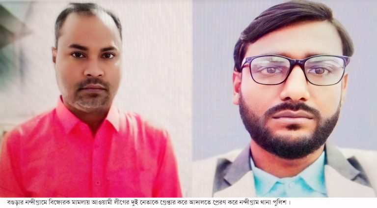 বগুড়ার নন্দীগ্রামে আওয়ামী লীগের দুই নেতা গ্রেপ্তার হয়েছে। রবিবার (২৭ অক্টোবর) নন্দীগ্রাম থানা পুলিশ এতথ্য নিশ্চিত করেছেন।
