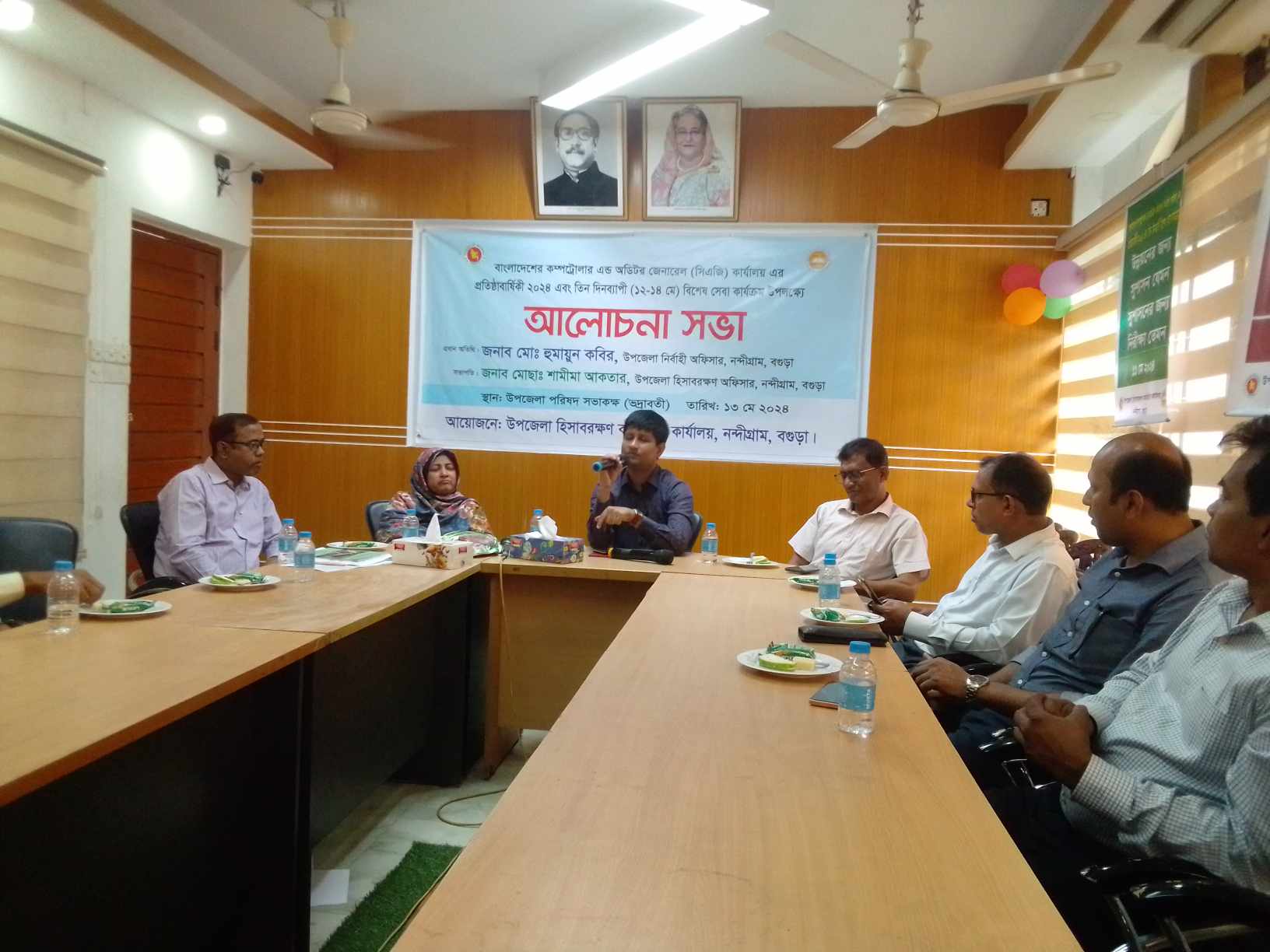 নন্দীগ্রাম (বগুড়া) প্রতিনিধি : বাংলাদেশের কম্পট্রোলার এন্ড অডিটর জেনারেল (সিএজি) কার্যালয়ের ৫১তম প্রতিষ্ঠাবার্ষিকী ২০২৪ এবং তিন দিনব্যাপী (১২-১৪ মে) বিশেষ সেবা কার্যক্রম উপলক্ষ্যে আলোচনা সভা অনুষ্ঠিত হয়েছে।