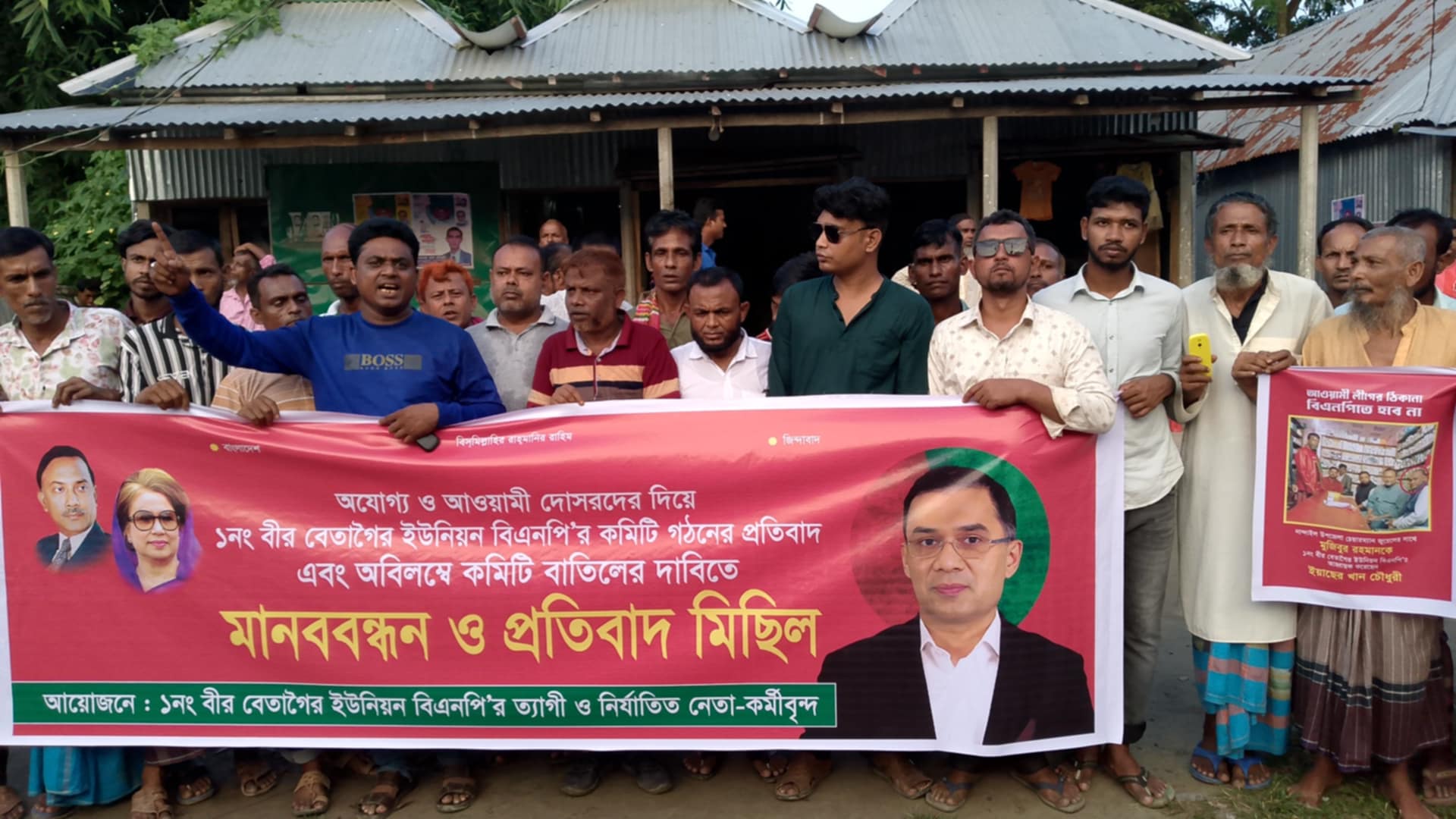 রোববার (৭ সেপ্টেম্বর) বিকালে বীর বেতাগৈর ইউনিয়নের বীরকামটখালী দক্ষিণ বাজার প্রধান সড়কে এই মানববন্ধন ও প্রতিবাদ মিছিল অনুষ্ঠিত হয়। মানববন্ধন শেষে একটি প্রতিবাদ মিছিল ইউনিয়নের গুরুত্বপূর্ণ সড়ক প্রদক্ষিণ করে এবং কমিটি বাতিলের দাবিতে বিভিন্ন স্লোগান দেয়। মানববন্ধনে বক্তারা অভিযোগ করেন, সদ্য ঘোষিত কমিটিতে এমন সব ব্যক্তিদের রাখা হয়েছে যারা অতীতে দলের জন্য কোনো অবদান রাখেননি, বরং আওয়ামী লীগের সঙ্গে তাদের সখ্যতা রয়েছে। এছাড়া যিনি বিগত ফ্যাসিবাদ সরকারের আমলে ১৫ই আগস্ট শোক দিবসে কালো ব্যজ ধারন করে শোক দিবস পালন করেছে, তাকে বিএনপি’র ওই কমিটির আহ্বায়ক করা হয়েছে। অথচ যারা দিনের পর দিন দলের জন্য জেল-জুলুম সহ্য করেছেন, রাজপথে সংগ্রাম করেছেন, তাদের বাদ দিয়ে অযোগ্য ও সুবিধাবাদীদের দিয়ে কমিটি গঠন করা হয়েছে। এটি দলের ত্যাগী নেতা-কর্মীদের জন্য অত্যন্ত হতাশাজনক এবং এটি কোনোভাবেই মেনে নেওয়া হবে না।