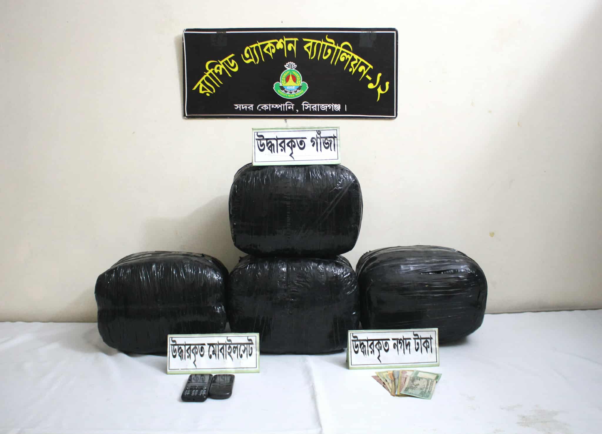 র্যাপিড অ্যাকশন ব্যাটালিয়ন (র্যাব)-১২, সিরাজগঞ্জের অভিযানে ২০ কেজি গাঁজাসহ দুই মাদক ব্যবসায়ীকে গ্রেফতার করা হয়েছে। এ সময় গাঁজা পরিবহনে ব্যবহৃত একটি কাভার্ড ভ্যান, দুটি মোবাইল ফোন ও নগদ ১ হাজার ৩০০ টাকা জব্দ করা হয়।