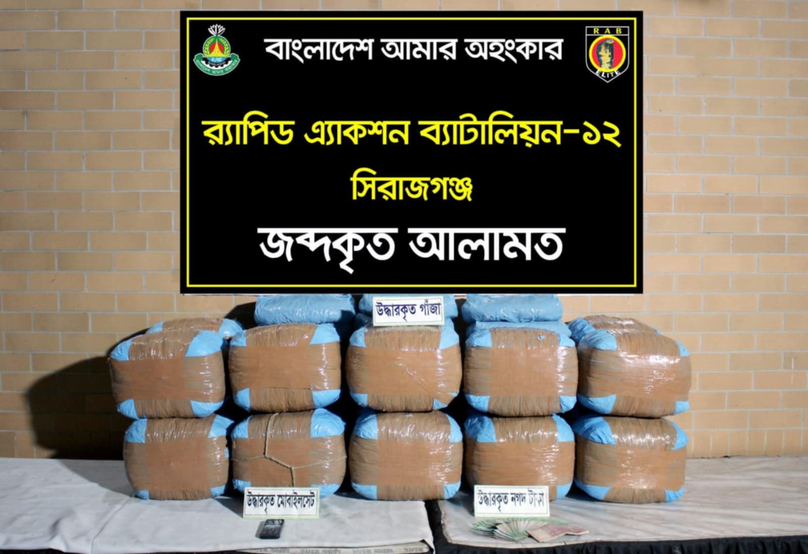 র্যাব-১২ এর এক বিশেষ অভিযানে বঙ্গবন্ধু সেতুর সিরাজগঞ্জ প্রান্তে ১০১ কেজি গাঁজাসহ দুই মাদক ব্যবসায়ীকে আটক করা হয়েছে।
