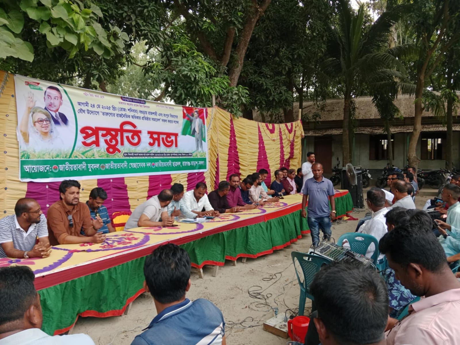 সিরাজগঞ্জ রায়গঞ্জ উপজেলা, নিমগছি ডিগ্রি কলেজ প্রস্তুতি সভা।আগামী ২৪ মে ২০২৫ খ্রি (রোজ শনিবার) বগুড়া রাজশাহী এবং রংপুর বিভাগের যৌথ উদ্যোগের তারুণ্যের রাজনৈতিক অধিকার প্রতিষ্ঠা সমাবেশ সফল করা লক্ষ্যে। রায়গঞ্জ উপজেলা নেতা কর্মী হিসেবে উপস্থিত ছিলেন উপজেলা বিএনপি সাবেক সভাপতি শামসুল ইসলাম ও উপজেলা বিএনপি সাবেক সাধারণ সম্পাদক ভিপি আয়নুল হক,জেলা বিএনপি সদস্য রাহিদ মান্নান লেলিন , সাবেক সহ সভাপতি খাইরুল মাস্টার সিরাজগঞ্জ জেলা বিএনপি সদস্য হায়াত মুন ইন্নালিন,সাবেক যুগ্ম সাধারণ সম্পাদক আলহাজ দুলাল হাজী, আরো উপস্থিতি ছিলেন রায়গঞ্জ,তাড়াস, ছাএ দলের নেতাকর্মী ও যুবদলের নেতাকর্মী, স্বেচ্ছাসেবকদল নেতাকর্মী ও রাজনৈতিক নেতৃবৃন্দ সহ নানা পেশার মানুষ।।