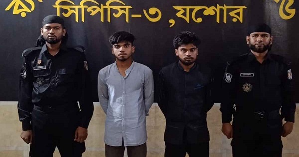 রংপুর থেকে অপহৃত স্কুলছাত্রীকে যশোর থেকে উদ্ধার করা হয়েছে। এ সময় দুই অপহরণকারীকে গ্রেফতার করেছে র্যাব-৬ যশোর ক্যাম্পের সদস্যরা।বৃহস্পতিবার (১৪মার্চ) ভোরে যশোরের ঝিকরগাছা থেকে ওই স্কুলছাত্রীকে উদ্ধার করা হয়। গ্রেফতারকৃত দু’জন হলেন, রংপুরের হারাগাছ উপজেলার বানুপাড়া এলাকার ইউসুফ আলীর ছেলে শাহাজাহান ওরফে সানি (২০) ও শাহিন মিয়া (২৮)। মামলা সূত্রে জানা যায় গেছে, রংপুর জেলার হারাগাছ উপজেলার অক্সফোর্ড ইন্টারন্যাশনাল গ্রামার স্কুলে ১০ম শ্রেণির এক ছাত্রীকে ১৩ ফেব্রুয়ারি সকালে অপহরণ করে শাহাজাহান ওরফে সানি ও তার ভাই শাহিন মিয়া। পরিবারের সদস্যরা খোঁজাখুঁজি করে তাকে না পেয়ে ৩ মার্চ হারাগাছ থানায় স্কুলছাত্রীর পিতা অপহরণ মামলা করেন।র্যাব-৬ যশোর ক্যাম্পের কোম্পানি অধিনায়ক মেজর মোহাম্মদ সাকিব হোসেন জানান, মামলার তদন্তকারী কর্মকর্তার মাধ্যমে অবহিত হয়ে র্যাব-৬ যশোর ক্যাম্প অপহরণের বিষয়ে ছায়া তদন্ত শুরু করে। একপর্যায়ে গোপনে প্রাপ্ত তথ্যের ভিত্তিতে বৃহস্পতিবার ভোরে যশোর জেলার ঝিকরগাছা উপজেলার গোলবাকপুর এলাকা সানি ও শাহিনকে গ্রেফতার করা হয়। এ সময় তাদের জিম্মায় থাকা ভিকটিমকেও উদ্ধার করা হয়।ঘটনার বিষয়ে জিজ্ঞাসাবাদে অপহৃত স্কুলছাত্রী র্যাবকে জানিয়েছে, স্কুলে যাওয়া আসার পথে অপহরণকারী সানি প্রায়ই তাকে উত্ত্যক্ত করতো এবং প্রেমের প্রস্তাব দিত। প্রস্তাবে রাজি না হওয়ায় ১৩ ফেব্রুয়ারি সহযোগীদের সহায়তায় তাকে জোরপূর্বক অপহরণ করে তাকে গোলবাকপুর এলাকায় অপহরণকারীর নানা বাড়িতে আটকে রেখে বিয়েতে রাজি করার চেষ্টা করে। উদ্ধারকৃত স্কুলছাত্রী এবং অপহরণকারীদের রংপুরের হারগাছ থানায় হস্তান্তর করা হয়েছে।