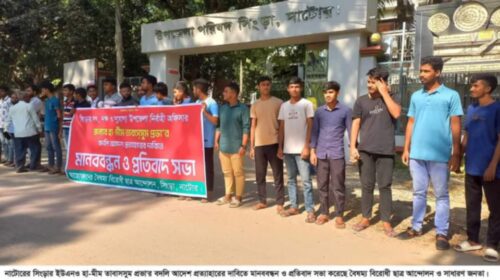 সিংড়ায় ইউএনও’র বদলি আদেশ প্রত্যাহারের দাবিতে মানববন্ধন