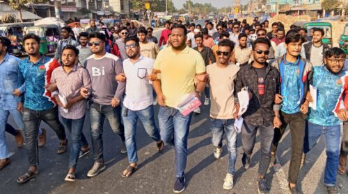 নিষিদ্ধ সংগঠন ছাত্রলীগের কর্মসূচীর প্রতিবাদে নন্দীগ্রামে ছাত্রদলের বিক্ষোভ মিছিল