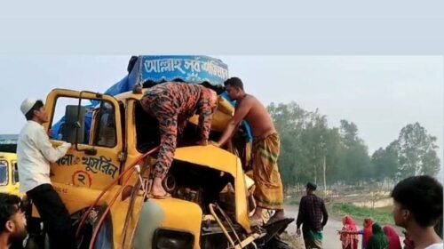 রায়গঞ্জ কালিকাপুর ছোট পাথর ভর্তি এক চলন্ত ট্রাক পিছন থেকে অপর একটি ট্রাককে ধাক্কা দেয়