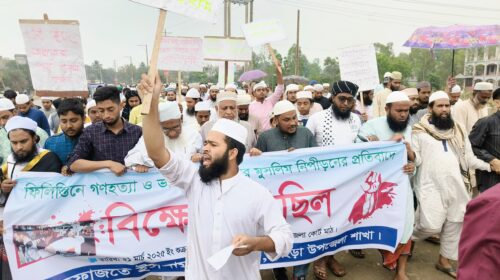 ফিলিস্তিনে গণহত্যার প্রতিবাদে সিংড়ায় বিক্ষোভ মিছিল ও সমাবেশ
