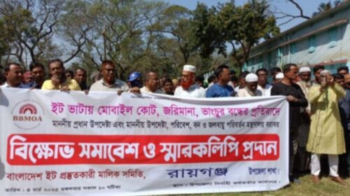 রায়গঞ্জে ইটভাটায় ভ্রাম্যমাণ বন্ধের দাবিতে বিক্ষোভ সমাবেশ ও স্মারকলিপি প্রদান